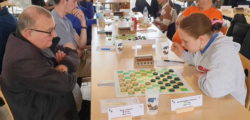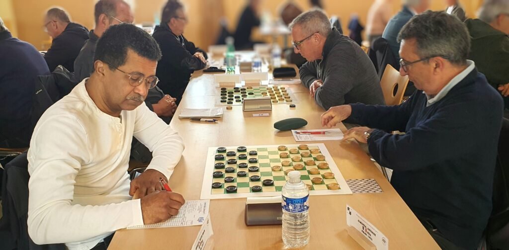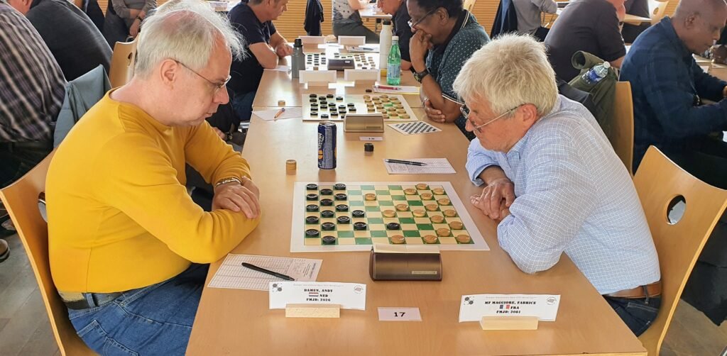Après un intense travail de préparation de plusieurs mois, assuré principalement par notre Président, Ghislain Baligand, le temps était donc venu, ce 22 avril 2025, d’entrer dans le vif des débats de cette World Cup *** de Bourges, sous l’arbitrage de Richard Przewozniak, par ailleurs vice-président de la Fédération Mondiale de jeu de dames (FMJD), assisté de Boris Darry du club de Watrelos.