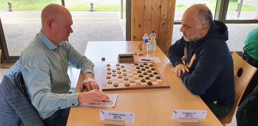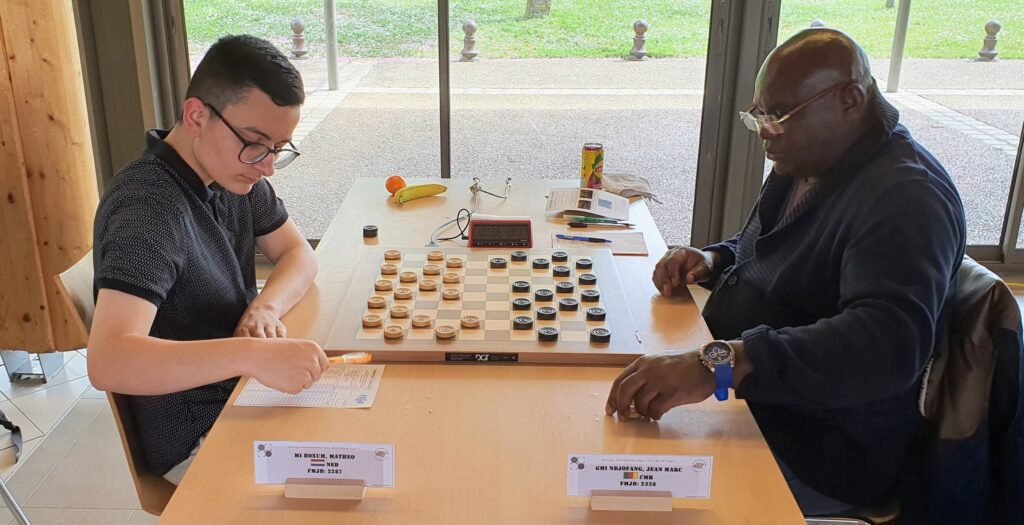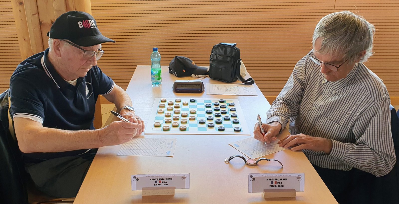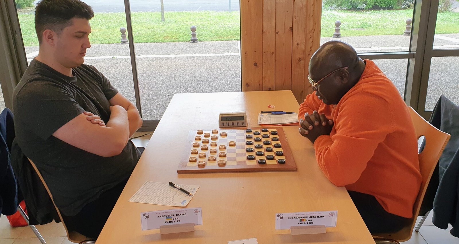 A 14h30, la cérémonie d’ouverture de cette compétition débuta avec la diffusion de l’hymne national français, la Marseillaise, et de celui de la FMJD qui retentissaient dans une salle du Moutet pavoisée aux couleurs des nations auxquelles appartenaient les 92 joueurs participant à l’épreuve. Puis, en présence de Yannick Bedin, maire-adjoint de Bourges, délégué à la culture, le Président de l’Amicale Damiste du Cher et l’arbitre de la rencontre souhaitèrent la bienvenue aux participants venus de France mais aussi de sept autres pays (Pays-Bas, Ukraine, Pologne, Lettonie, Cameroun, Côte d’Ivoire et Israël). Les Pays-Bas, en particulier, n’avaient pas lésiné sur les moyens pour remporter cette épreuve puisqu’ils avaient envoyé à Bourges pas moins de 19 joueurs dont 5 GMI (Grand Maître International) et 5 MI (Maître International).