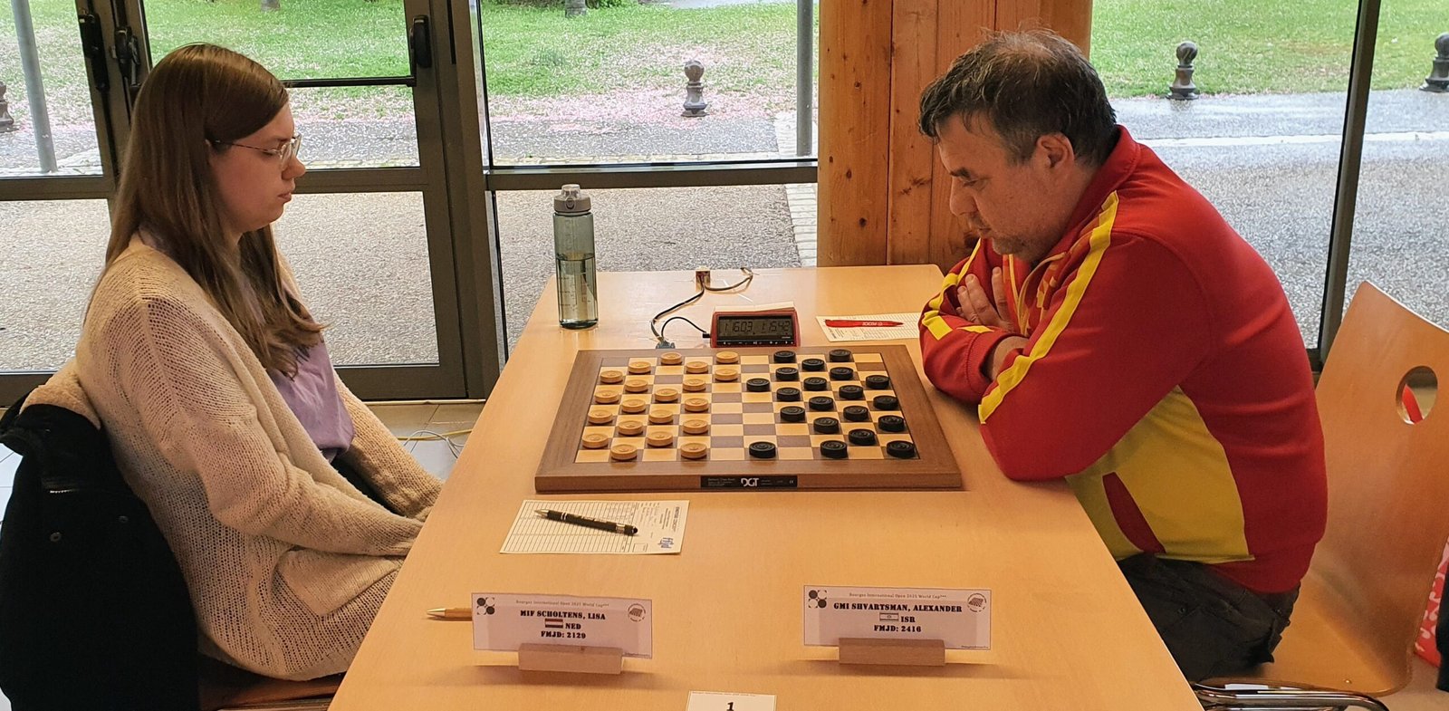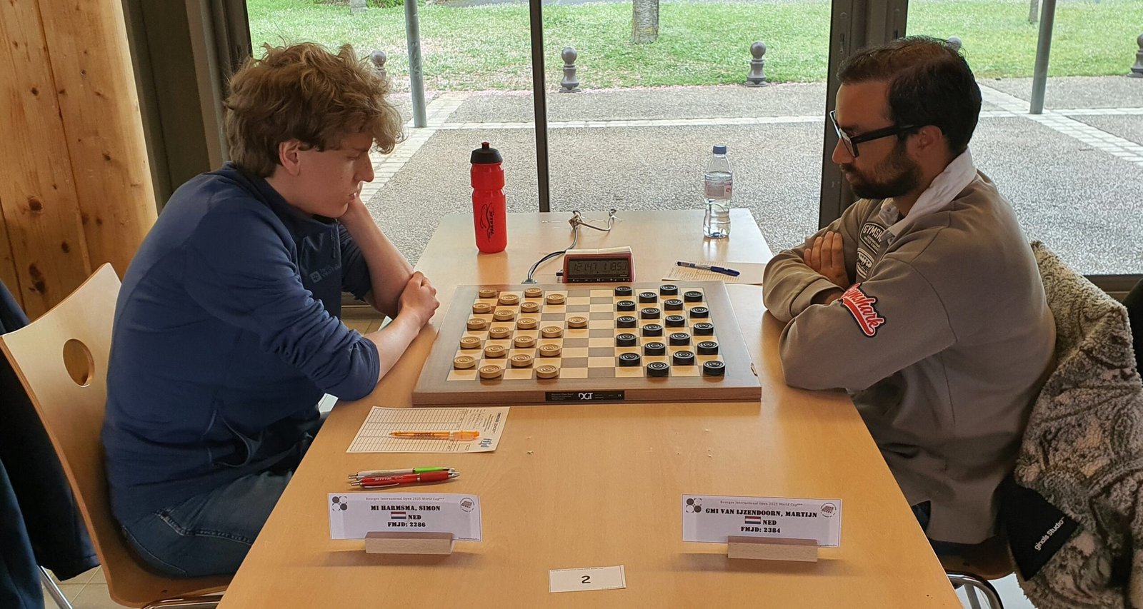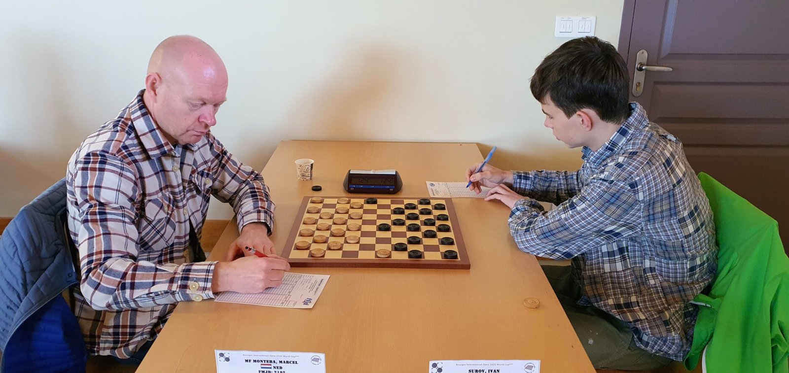 A 14h30, la cérémonie d’ouverture de cette compétition débuta avec la diffusion de l’hymne national français, la Marseillaise, et de celui de la FMJD qui retentissaient dans une salle du Moutet pavoisée aux couleurs des nations auxquelles appartenaient les 92 joueurs participant à l’épreuve. Puis, en présence de Yannick Bedin, maire-adjoint de Bourges, délégué à la culture, le Président de l’Amicale Damiste du Cher et l’arbitre de la rencontre souhaitèrent la bienvenue aux participants venus de France mais aussi de sept autres pays (Pays-Bas, Ukraine, Pologne, Lettonie, Cameroun, Côte d’Ivoire et Israël). Les Pays-Bas, en particulier, n’avaient pas lésiné sur les moyens pour remporter cette épreuve puisqu’ils avaient envoyé à Bourges pas moins de 19 joueurs dont 5 GMI (Grand Maître International) et 5 MI (Maître International).