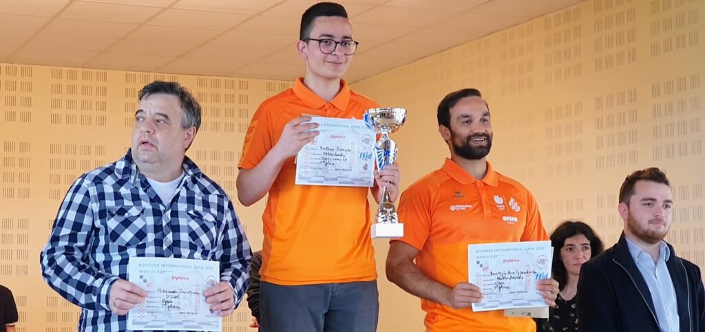 A l’issue des 8 rondes et de 5 journées de compétition acharnée, il a été nécessaire de recourir à un départage entre les 4 premiers joueurs qui ont tous terminé avec 12 points sur 16. La compétition a été finalement remportée par Mathéo Boxum, jeune MI de moins de 20 ans, devant Alexander Shvartsman, GMI confirmé, et Marti3jn Van Ijzendoorn, GMI de moins de 30 ans. Arnaud Cordier, le premier joueur français, multiple champion de France, reste au pied du podium, sans avoir pour autant démérité puisqu’il gagne une place par rapport à son numéro de série. Avec 11 points, 8 joueurs, dont 6 néerlandais, 1 Camerounais et 1 Ukrainien, se partagent les places 5 à 12.