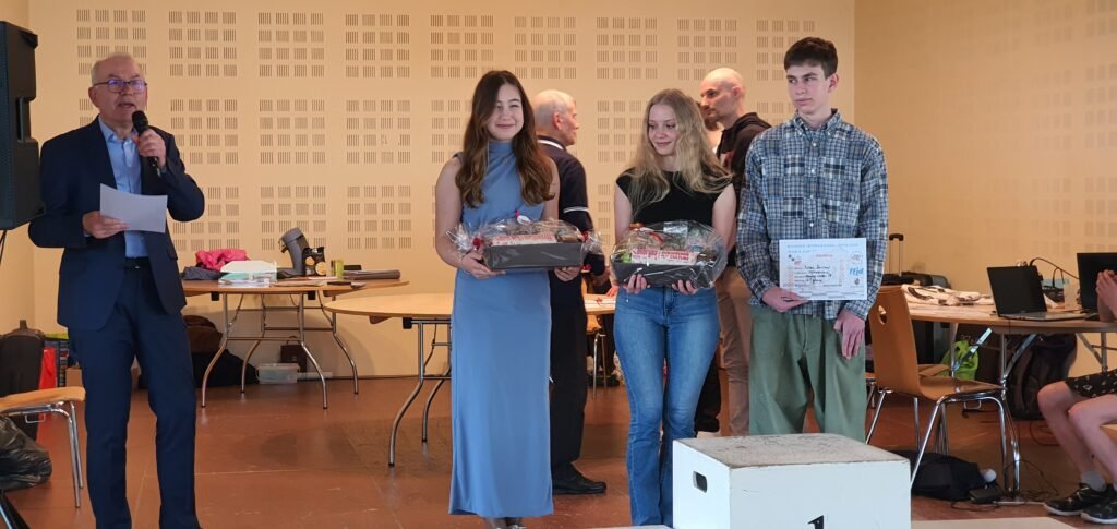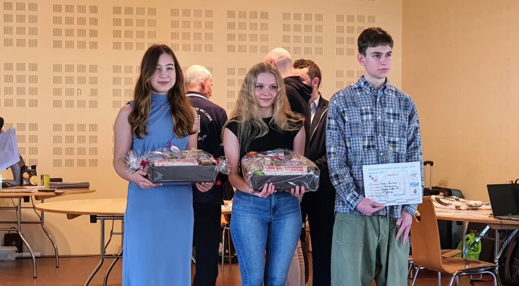 La compétition s’est achevée le 27 avril 2025 avec la diffusion des hymnes et la remise par le Président Baligand des prix en espèces et d’un diplôme officiel à chacun des lauréats. Trois très jeunes joueurs, non récompensés par ailleurs, se sont vus remettre un panier garni pour leurs bons résultats : Ivan Surov, Ukrainien, Patrycja Tomczak, polonaise et Malvine Misane, Lettone.